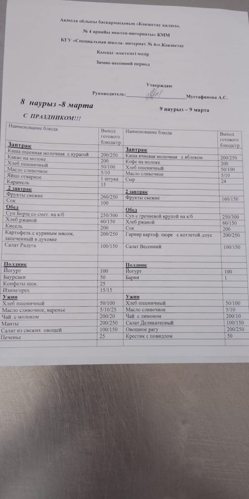 Коммунальное государственное учреждение "Специальная школа-интернат №4, город Кокшетау" управления образования Акмолинской области
