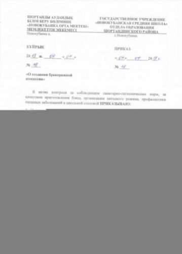 Тамақтану комиссиясының 2025-2026 оқу жылына арналған актілері.