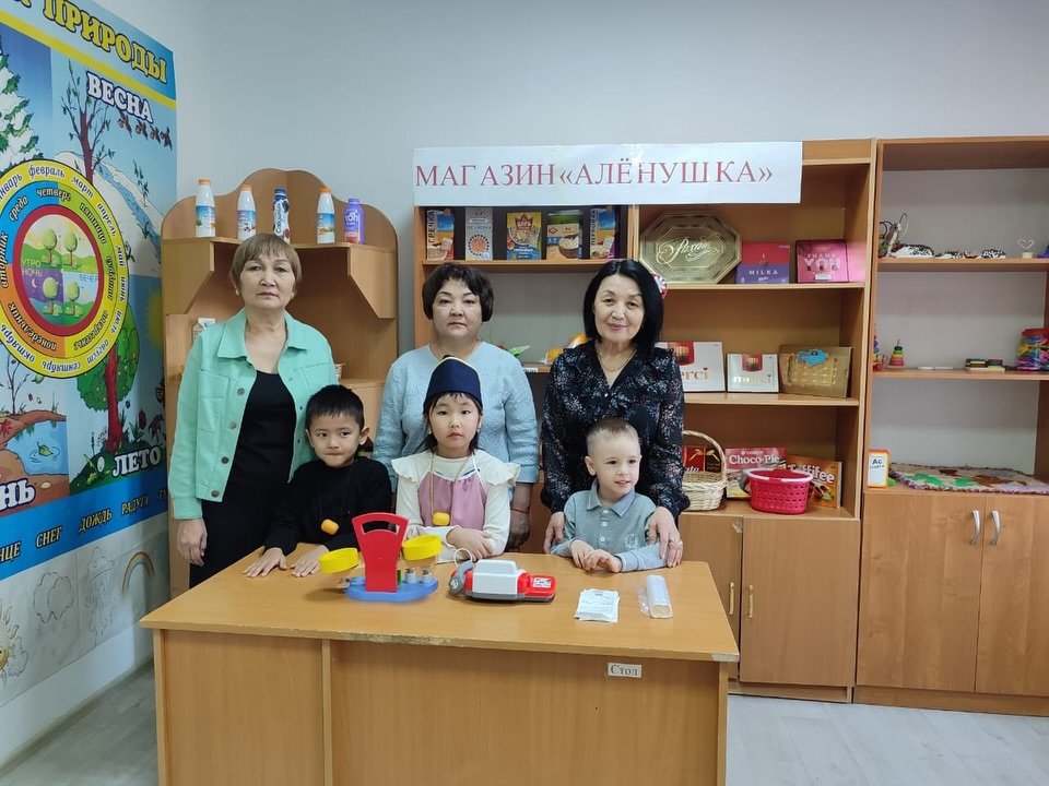 Балаларда сауда қызметкерлерінің еңбегі туралы түсінік қалыптастыру, рөлдік әрекеттер (сатушы, кассир, сатып алушы) арқылы коммуникативтік, әлеуметтік және танымдық дағдыларын дамыту мақсатында 0 «Д» сыныбында «Дүкенде» атты сюжетке құрылған рөлдік ойын...